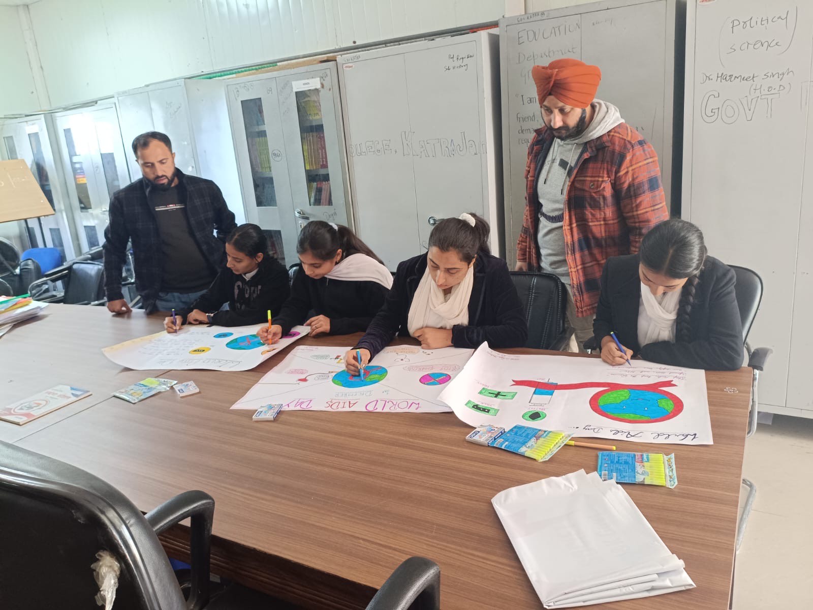 On the eve of World AIDS Day i.e. 1st of December, 2025, Government Degree College Kakryal, Katra in collaboration with Red Ribbon Club organized a series of awareness activities aimed at educating students and promoting collective responsibility toward fighting HIV/AIDS. The event was organized under the able guidance of the principal of the college, Dr. Rajni Bhagat. The events included a Poster Making Activity and the Formation of a Human Chain, both designed to highlight the importance of prevention, compassion, and community engagement. The program commenced with an enthusiastic Poster Making Activity, in which students participated actively and creatively. They prepared posters centered on themes such as HIV/AIDS awareness, prevention strategies, ending stigma, and support for affected individuals. Following the poster activity, students and faculty gathered on the college grounds to form a Human Chain as a symbolic gesture of unity and collective commitment to fighting HIV/AIDS. The human chain represented solidarity with people living with HIV and a commitment to spreading awareness. The event sent a strong visual message to the community about the importance of standing together in support of global health initiatives. The faculty members who were present during the event included Prof. Shikha Bhasin, Dr. Usha Sharma, Dr. Harmeet Singh, Dr. Manisha Kumari, Prof. Mohd. Younus Saleem, Dr. Amreen, Dr. Ishfaq Parry, Dr. Bilal, Dr. Ishfaq Bhat, Dr. Bindu, Ms. Somalya, and Mr. Hilal . The observance of World AIDS Day at GDC Kakryal was both informative and inspiring. Through poster making and the formation of a human chain, the program successfully communicated the importance of awareness, empathy, and active participation in global health campaigns. Such initiatives play a vital role in empowering students to become responsible citizens who contribute positively to society.